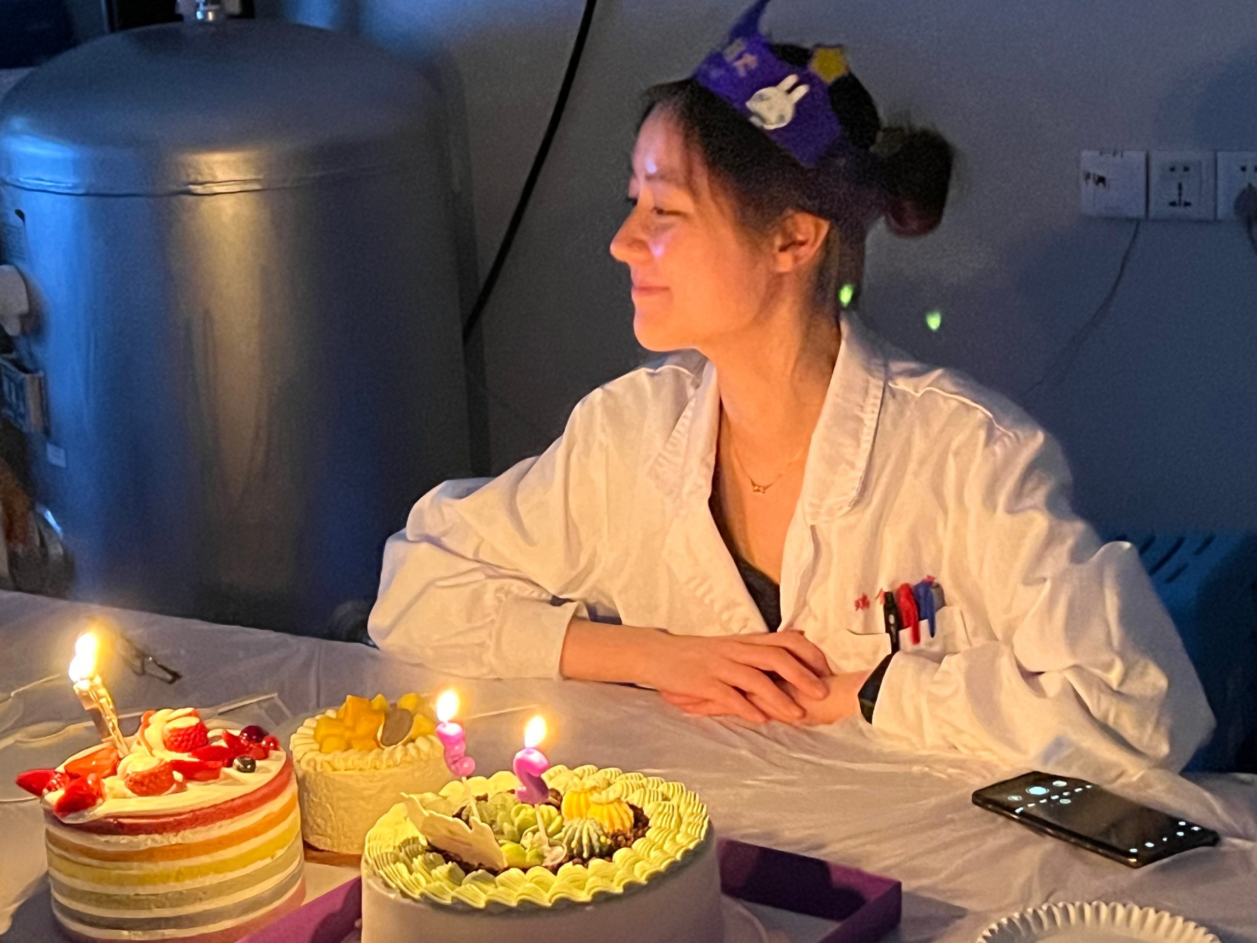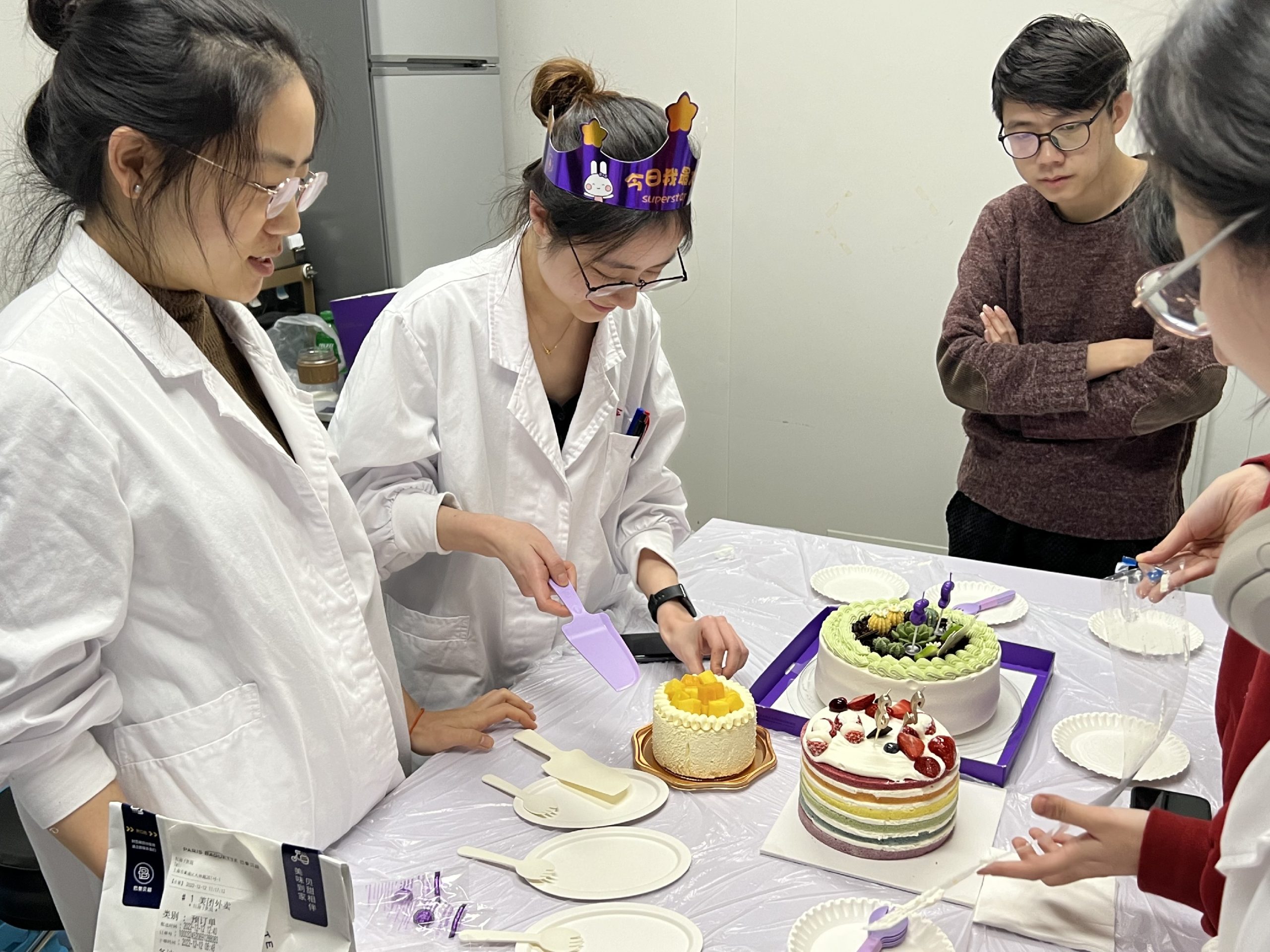 课题组成员在实验室一起为组员吴嘉祺庆祝生日