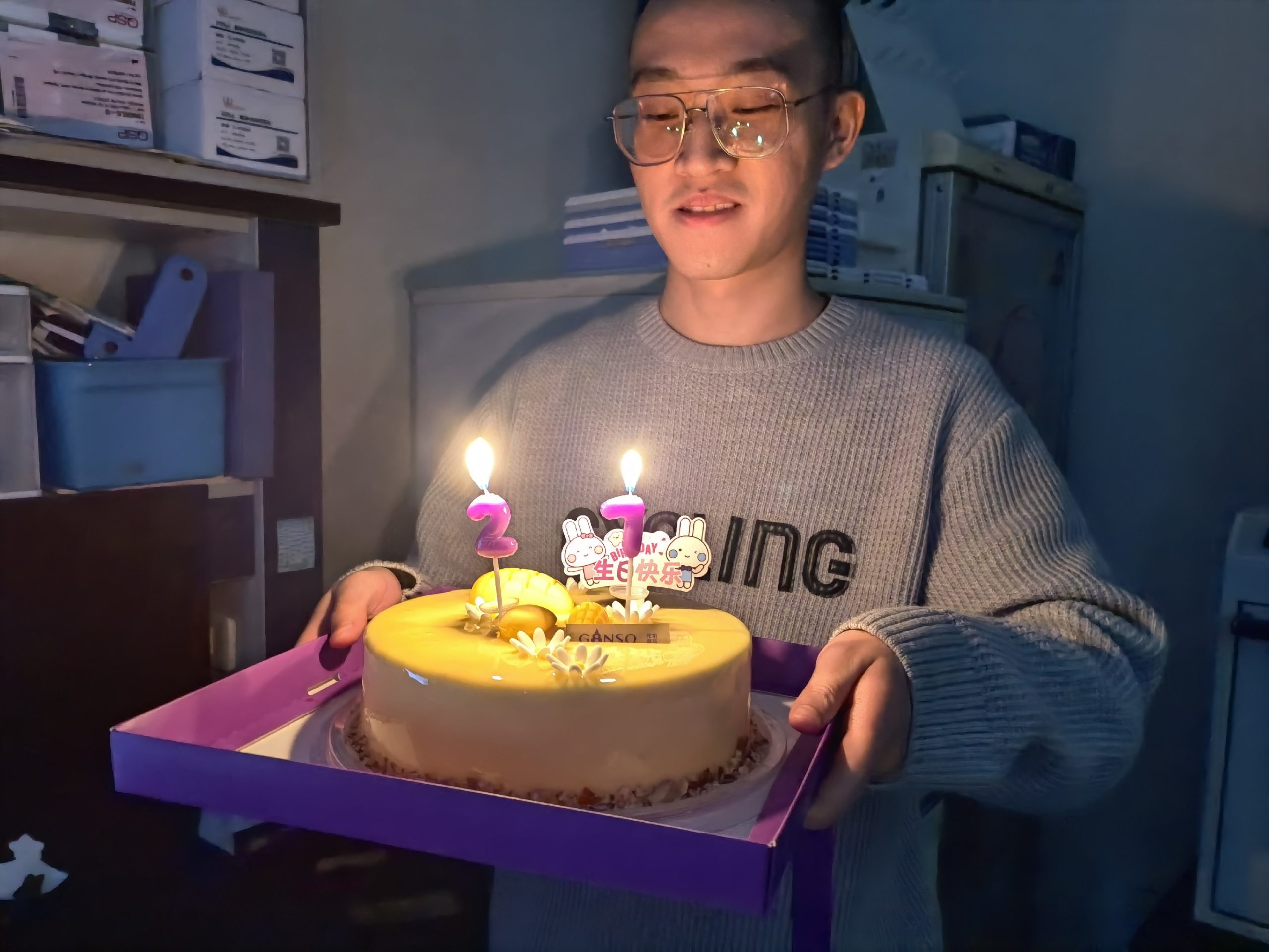 Members of the research group and team member Wang Zhengyuan celebrated their birthdays together in the laboratory