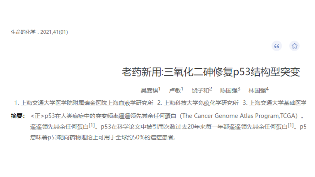 Xiao S*, Shi F*, Song H*, Cui J*, Zheng D, Zhang H, Tan K, Wu J, Chen X, Wu J, Tang Y, Dai Y, Lu M#: Characterization of the generic mutant p53-rescue compounds in a broad range of assays. Cancer Cell 2024