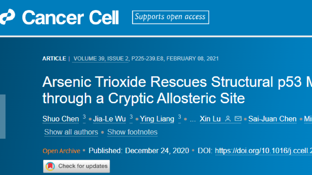 The research results of the research group on arsenic trioxide restoring the anti-cancer function of p53 structural mutant were published online in Cancer Cell on December 26, 2020, which has caused a great response in both academic and industrial circles at home and abroad
